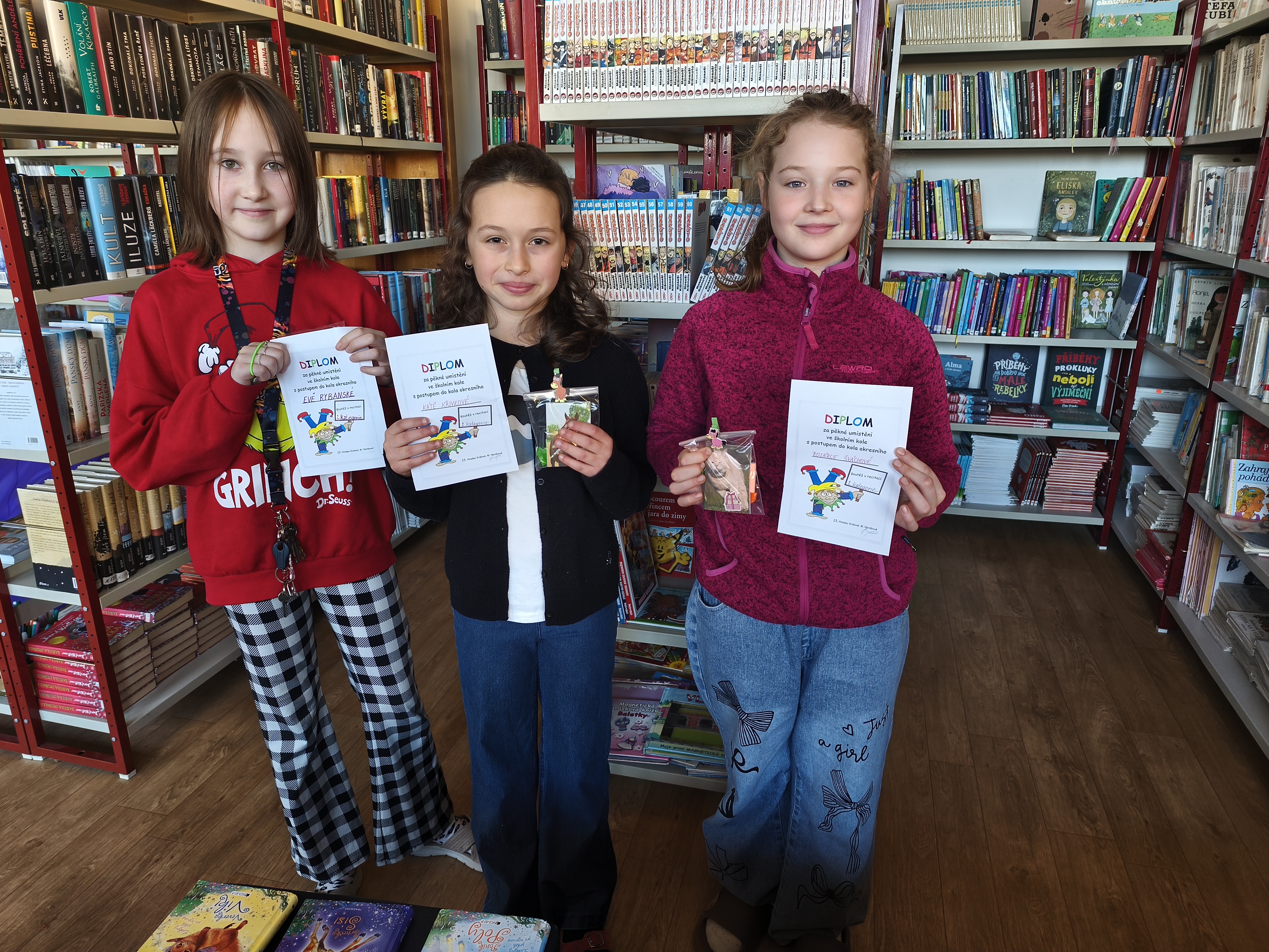 V pondělí 23.2. proběhlo školní kolo recitační soutěže. Zúčastnilo se ho 42 žáků 1. - 5. ročníku. Výkony recitátorů byly skvělé a velmi vyrovnané, takže vybrat ty nejlepší bylo obtížné. Nakonec se porota rozhodla poslat do okresního kola Ninu Astapenko ze 3.B, Natálku Štěrbovou ze 3.C a Hynka Dlabku ze 3.D. To jsou reprezentanti 1. věkové kategorie a 2. věkovou kategorii bude reprezentovat Rozálie Šváchová ze 4.A, Káťa Křivková ze 4.C a Eva Rybanská z 5.B.